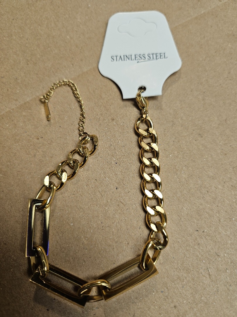 Mooie goudkleurige rvs armband, lengte 16 cm, breedte 6 mm.