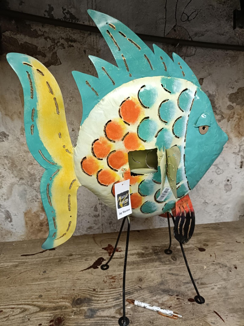 Grote vis van blik. Decoratief beeld - beeld vis - op standaard - Dorang L - handgemaakt